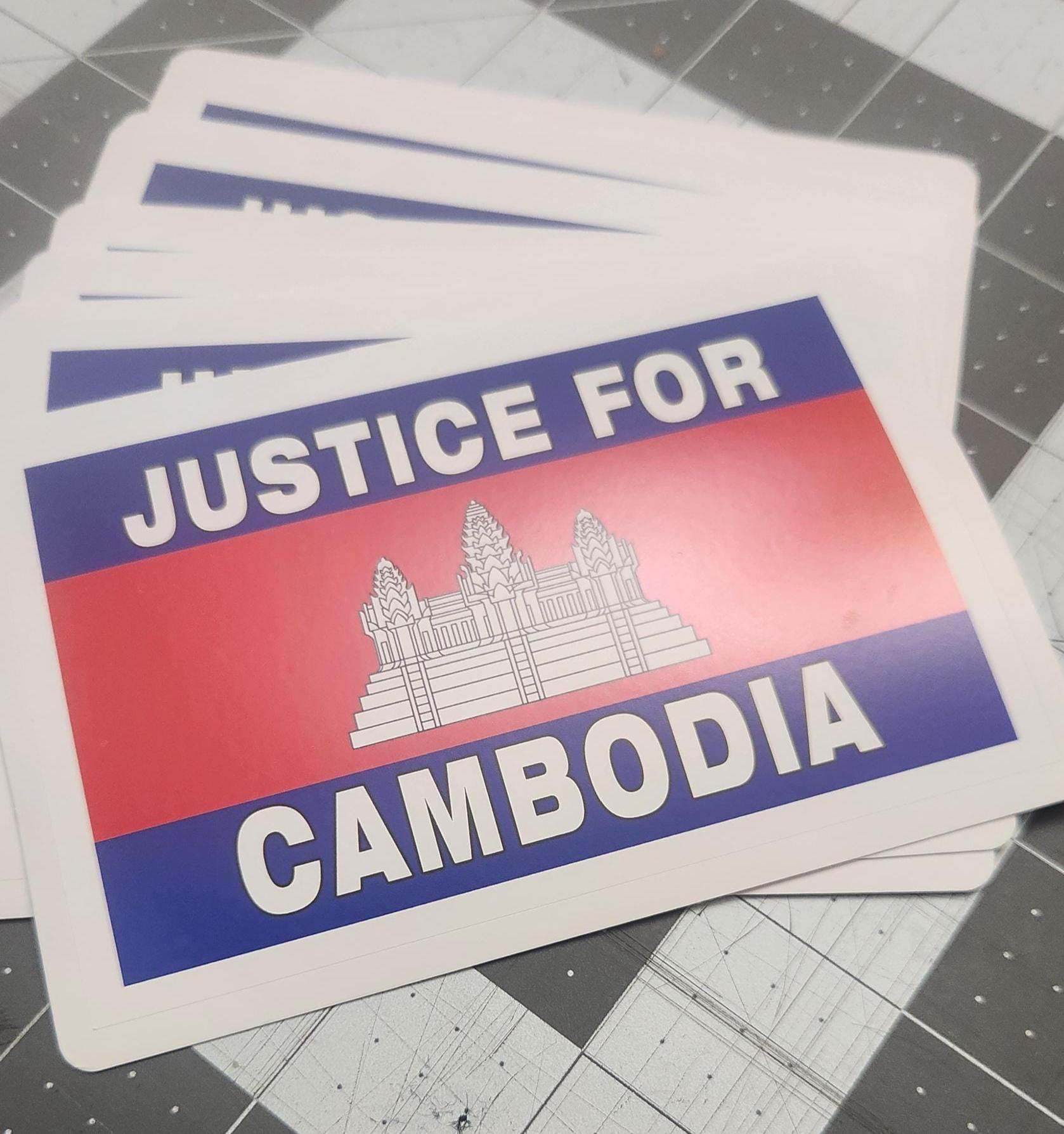 Justice for Cambodia Sticker —designed to honor the resilience of the Cambodians and call for peace and justice.